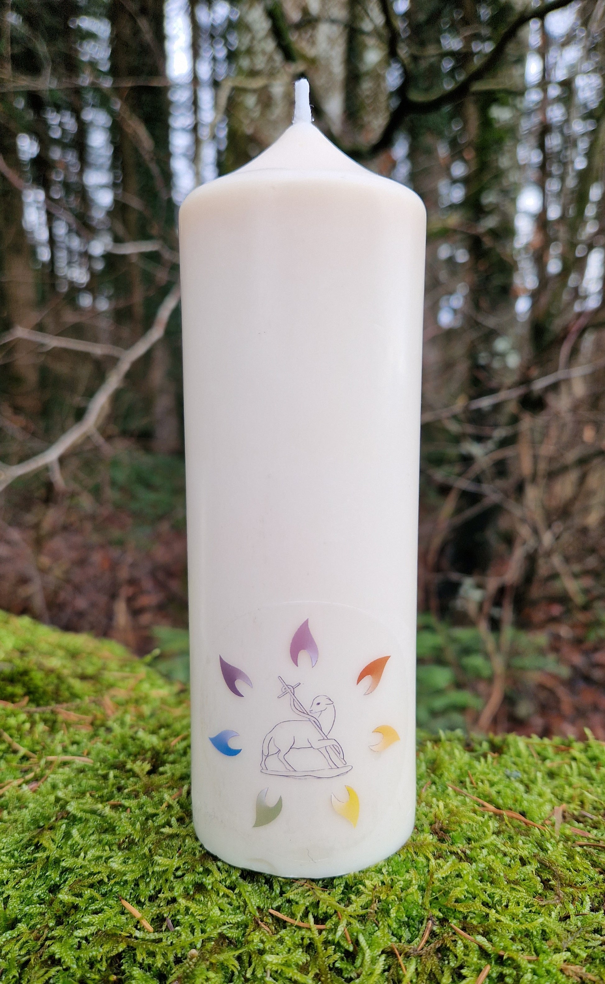 Bougie artisanale cylindrique naturelle, avec le sceau de l’École Essénienne. Sans parfum et en cire de colza biologique. Combustion 38 heures.