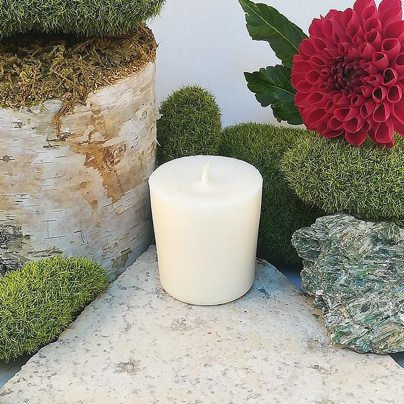 Bougie votive blanche naturelle.