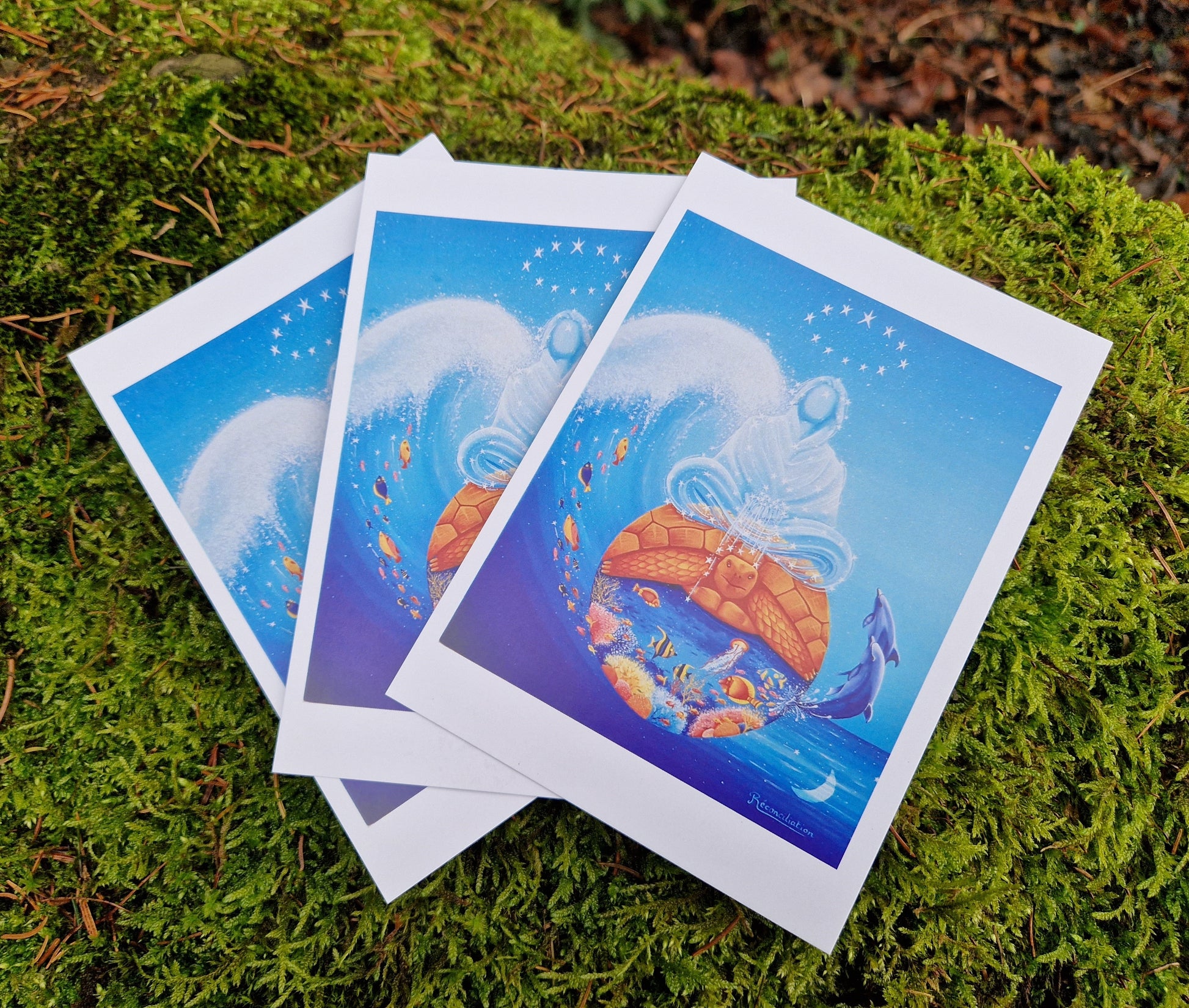 Carte postale « D’eau et d’étoiles » réalisé par Marie-Hélène Besson, artiste Essénienne.