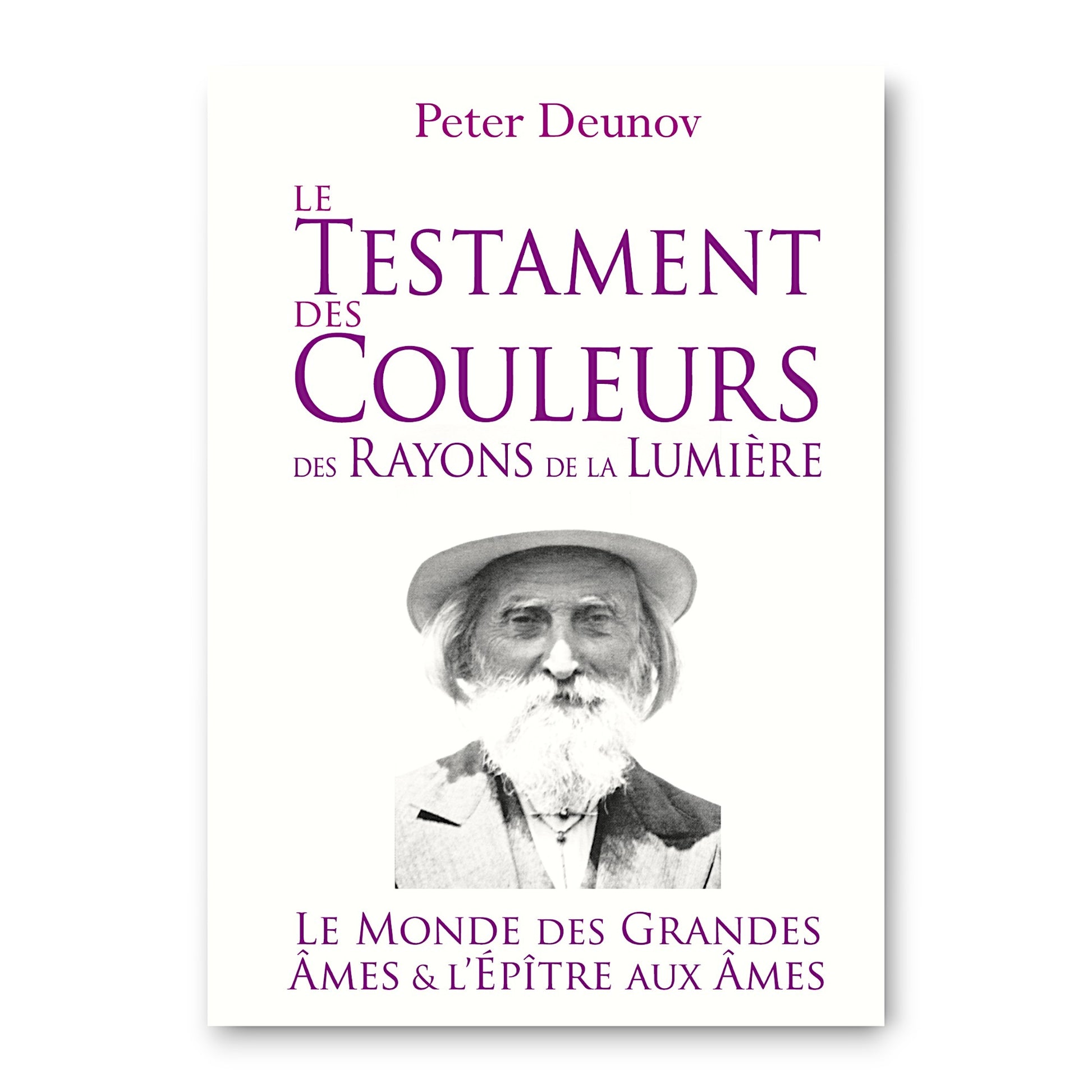 - « Le Testament des Couleurs des Rayons de la Lumière » a été écrit en 1912. Il s’agit ici d’une nouvelle traduction, inédite en français, basée sur l’ouvrage original écrit en bulgare par le Maître. Composé de versets bibliques liés aux Esprits de la Lumière, à leurs couleurs et à leurs vertus, il donne toutes les clés nécessaires « à l’élévation spirituelle et à l’avancement sur le chemin de Dieu ». Cette nouvelle édition contient également les propres paroles et conseils du Maître Deunov (inédits en français) sur la manière de travailler avec ce « véritable testament ».