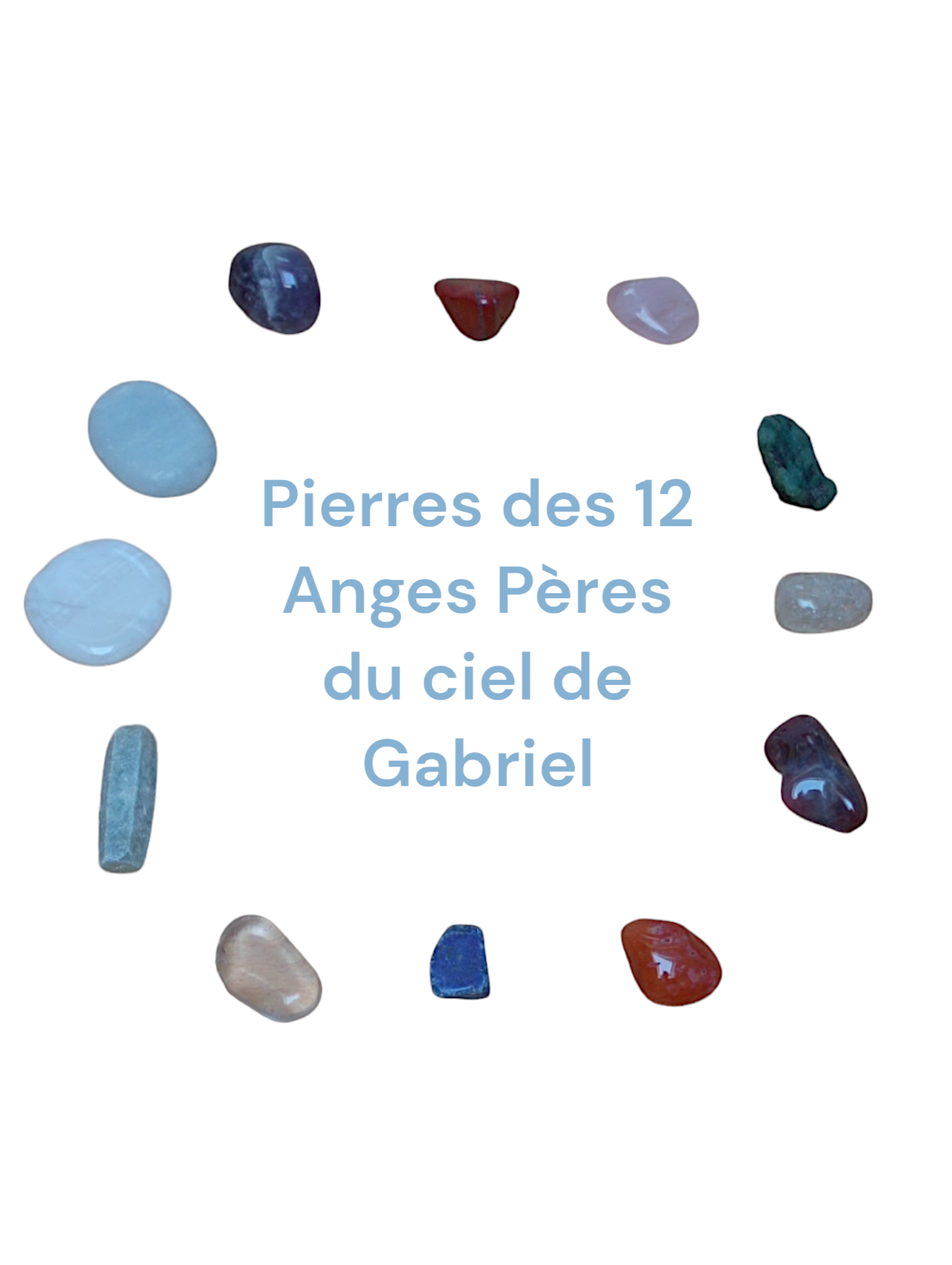 lot de 12 pierres avec notice pour les correspondances des pierres avec les Anges. Les pierres que nous vous proposons sont purifiés à l'eau de la source de l'Archange Gabriel, qui coule au sein du Village Essénien de Terranova.